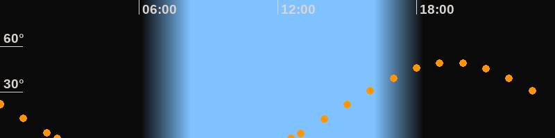 Höchster Stand (Kulmination)19:29 Uhr (h = 49.7°)