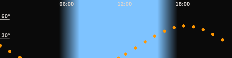 Höchster Stand (Kulmination)19:10 Uhr (h = 49.8°)