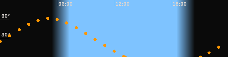 Höchster Stand (Kulmination)05:10 Uhr (h = 61.2°)