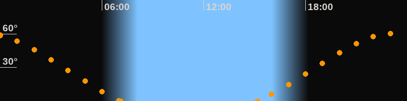 Höchster Stand (Kulmination)23:06 Uhr (h = 60.4°)