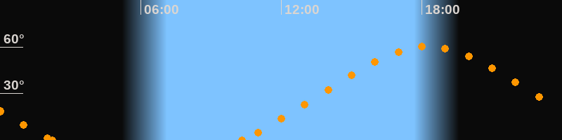 Höchster Stand (Kulmination)18:14 Uhr (h = 60.4°)