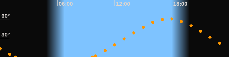 Höchster Stand (Kulmination)17:38 Uhr (h = 60.5°)