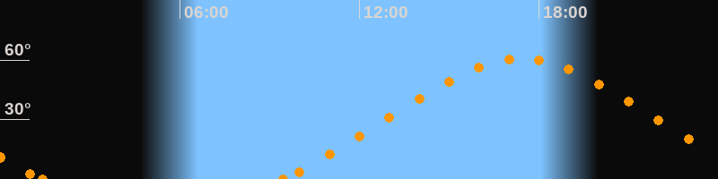 Höchster Stand (Kulmination)17:24 Uhr (h = 60.6°)