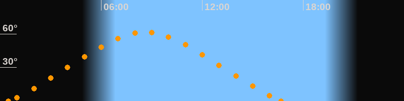 Höchster Stand (Kulmination)08:36 Uhr (h = 61.6°)