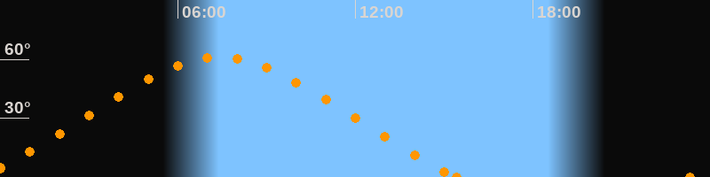 Höchster Stand (Kulmination)07:24 Uhr (h = 61.3°)
