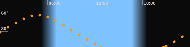 Höchster Stand (Kulmination)04:44 Uhr (h = 61.1°)