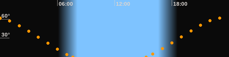 Höchster Stand (Kulmination)23:25 Uhr (h = 62.1°)