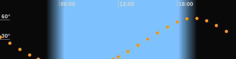 Höchster Stand (Kulmination)19:38 Uhr (h = 62.5°)