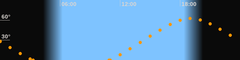Höchster Stand (Kulmination)19:04 Uhr (h = 62.5°)