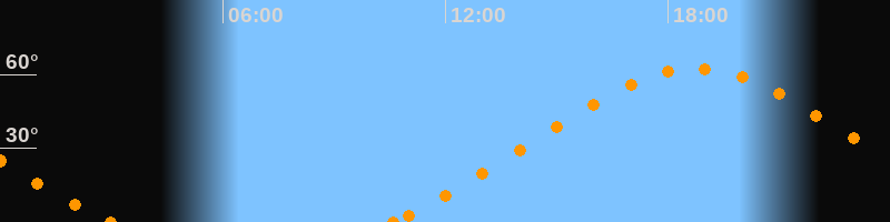 Höchster Stand (Kulmination)18:45 Uhr (h = 62.4°)
