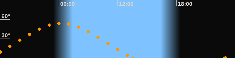 Höchster Stand (Kulmination)06:14 Uhr (h = 54.2°)