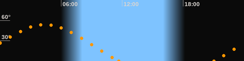 Höchster Stand (Kulmination)04:23 Uhr (h = 54°)