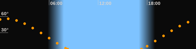 Höchster Stand (Kulmination)00:45 Uhr (h = 55.7°)
