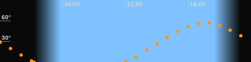 Höchster Stand (Kulmination)19:37 Uhr (h = 57°)
