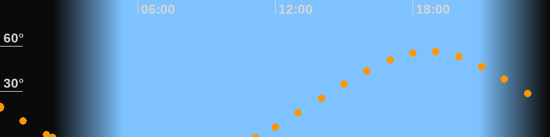 Höchster Stand (Kulmination)18:40 Uhr (h = 56.5°)