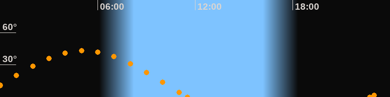 Höchster Stand (Kulmination)05:09 Uhr (h = 43.1°)