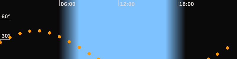 Höchster Stand (Kulmination)03:34 Uhr (h = 43.4°)