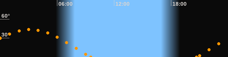 Höchster Stand (Kulmination)03:08 Uhr (h = 43.6°)