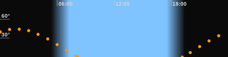 Höchster Stand (Kulmination)01:43 Uhr (h = 44.4°)