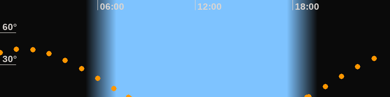 Höchster Stand (Kulmination)01:25 Uhr (h = 44.6°)