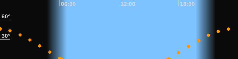 Höchster Stand (Kulmination)23:31 Uhr (h = 46.4°)