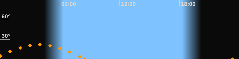 Aufgang23:18 Uhr im Südosten (αAz = 117.3°)