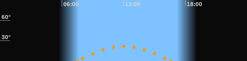 Höchster Stand (Kulmination)12:01 Uhr (h = 21.6°)
