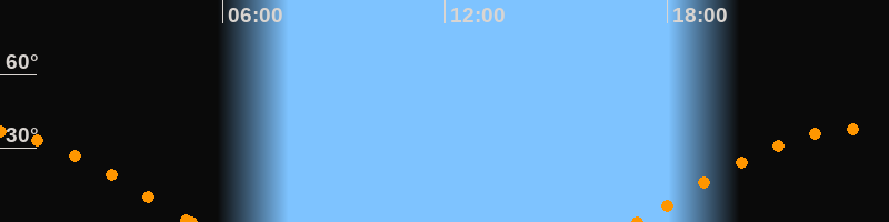 Höchster Stand (Kulmination)23:08 Uhr (h = 38°)