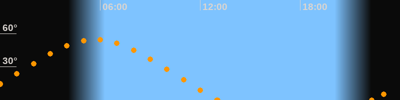Höchster Stand (Kulmination)05:42 Uhr (h = 54.5°)