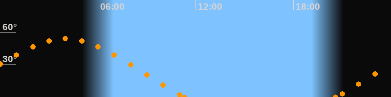 Höchster Stand (Kulmination)03:59 Uhr (h = 54.3°)
