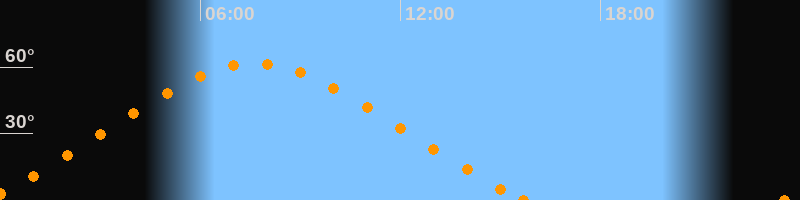 Höchster Stand (Kulmination)07:39 Uhr (h = 61.6°)