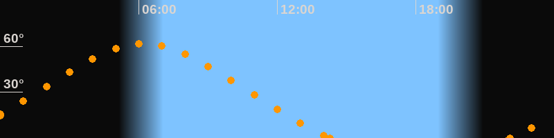 Höchster Stand (Kulmination)06:13 Uhr (h = 61.7°)