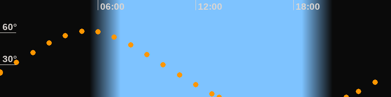 Höchster Stand (Kulmination)05:23 Uhr (h = 61.7°)
