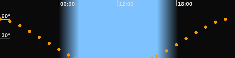 Höchster Stand (Kulmination)23:34 Uhr (h = 61.3°)