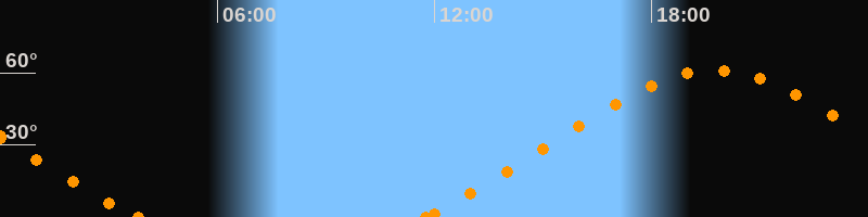 Höchster Stand (Kulmination)19:44 Uhr (h = 60.9°)