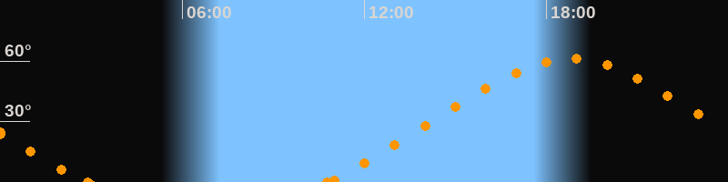Höchster Stand (Kulmination)18:48 Uhr (h = 61.1°)