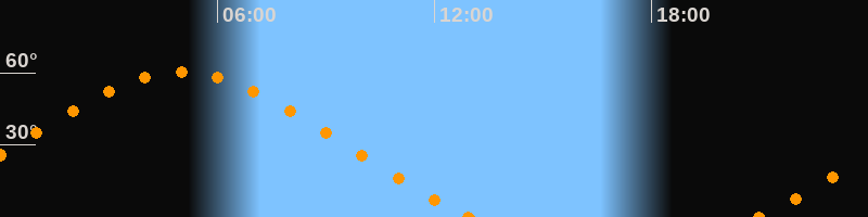 Höchster Stand (Kulmination)04:59 Uhr (h = 60.5°)