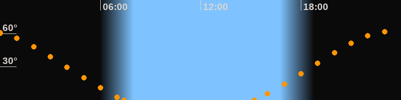 Höchster Stand (Kulmination)23:16 Uhr (h = 61.7°)