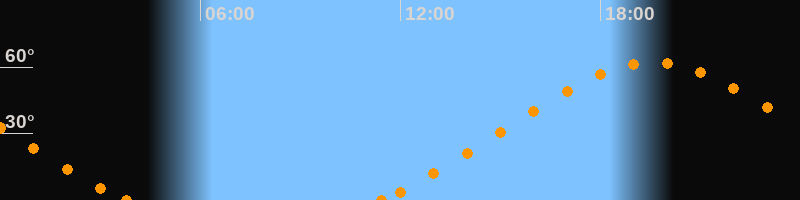 Höchster Stand (Kulmination)19:34 Uhr (h = 62.2°)