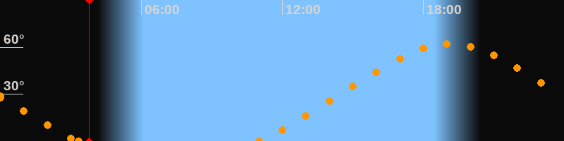 Höchster Stand (Kulmination)19:08 Uhr (h = 62.2°)