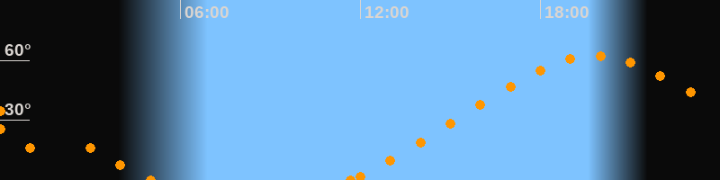 Höchster Stand (Kulmination)19:49 Uhr (h = 62.2°)