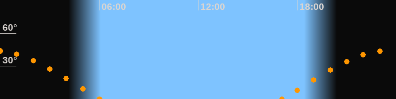 Höchster Stand (Kulmination)23:31 Uhr (h = 44.2°)