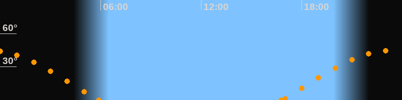 Höchster Stand (Kulmination)23:18 Uhr (h = 44.9°)