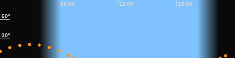 Aufgang22:29 Uhr im Südosten (αAz = 118.4°)