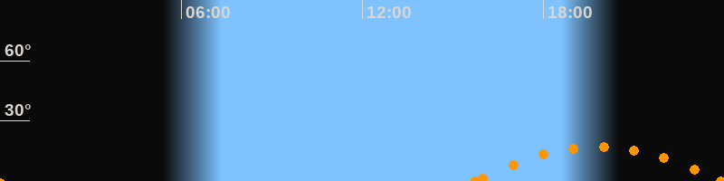 Untergang23:53 Uhr im Südwesten (αAz = 234.5°)