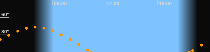 Höchster Stand (Kulmination)04:03 Uhr (h = 43.1°)