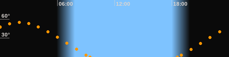 Höchster Stand (Kulmination)02:03 Uhr (h = 55.1°)