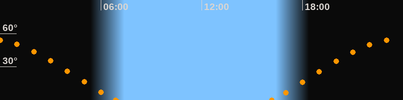 Höchster Stand (Kulmination)23:29 Uhr (h = 54.3°)