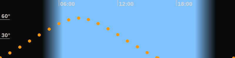 Höchster Stand (Kulmination)08:00 Uhr (h = 61.9°)