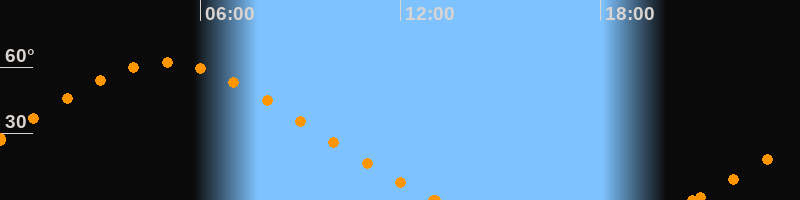 Höchster Stand (Kulmination)04:56 Uhr (h = 62.1°)